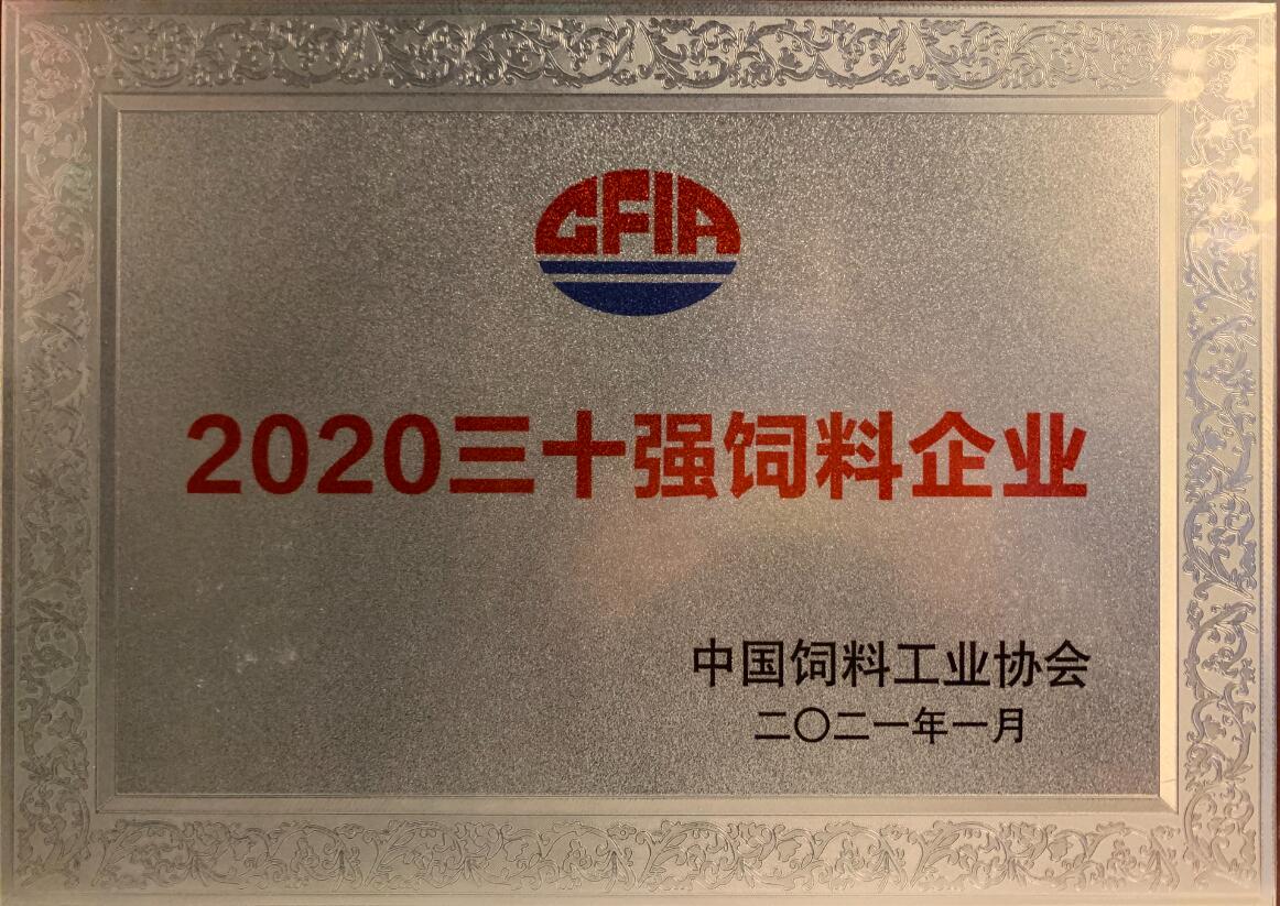 太阳集团tyc9728获“2020全国三十强饲料企业”