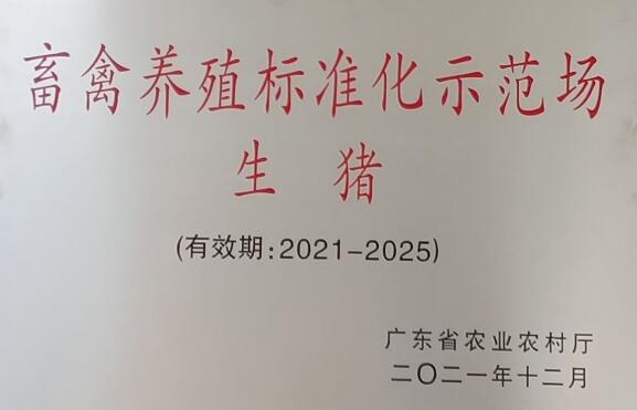 2021年12月-获“广东省级畜禽养殖标准化示范场(生猪)”
